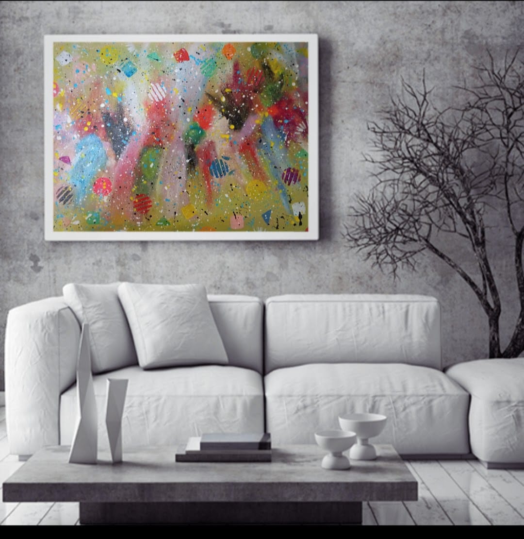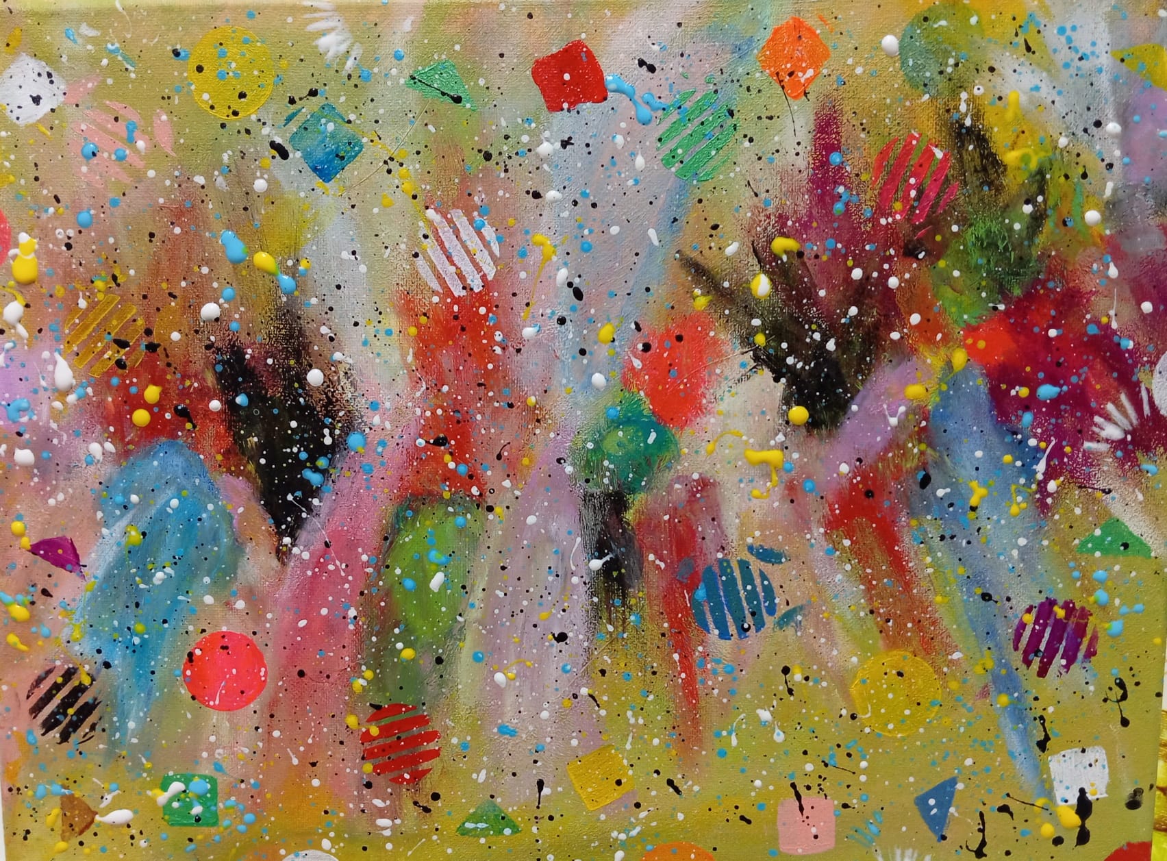 "CAOS CALMO" n.1 cattura l'essenza di una tempesta emotiva che gradualmente si dissolve. L'artista riversa sulla tela un'esplosione di colori applicati con gesti dinamici e spontanei—macchiati, spruzzati, strisciati con energia vitale. Ogni pennellata risuona di movimento e vitalità. Progressivamente, questa frenesia si attenua: i colori si rilassano verso i margini, perdendosi nel vuoto come il vento dopo la pioggia. Un'opera acrilica che comunica il passaggio dalla gioia tumultuosa alla serenità contemplativa, rivelando l'animo dell'artista in un momento di pura felicità creativa.