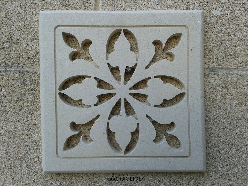 GRIGLIE DI AREAZIONE IN PIETRA LECCESE Tutti i modelli sono personalizzabili per misura e colore con eventuale variazione di prezzo.